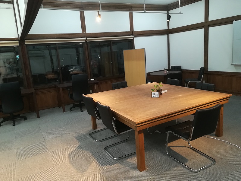 大正時代の面影を残しつつ、利用者にとって使いやすい空間となることを目指して、空間を整備しました。歴史的建造物という事もあり、構造に変化が加えられないため、机の配置に苦労しました。固定席は窓側に設置。コミュニケーションが生まれやすいように、施設の中心地には、施設のシンボルとなる大きなテーブルを設置しました。