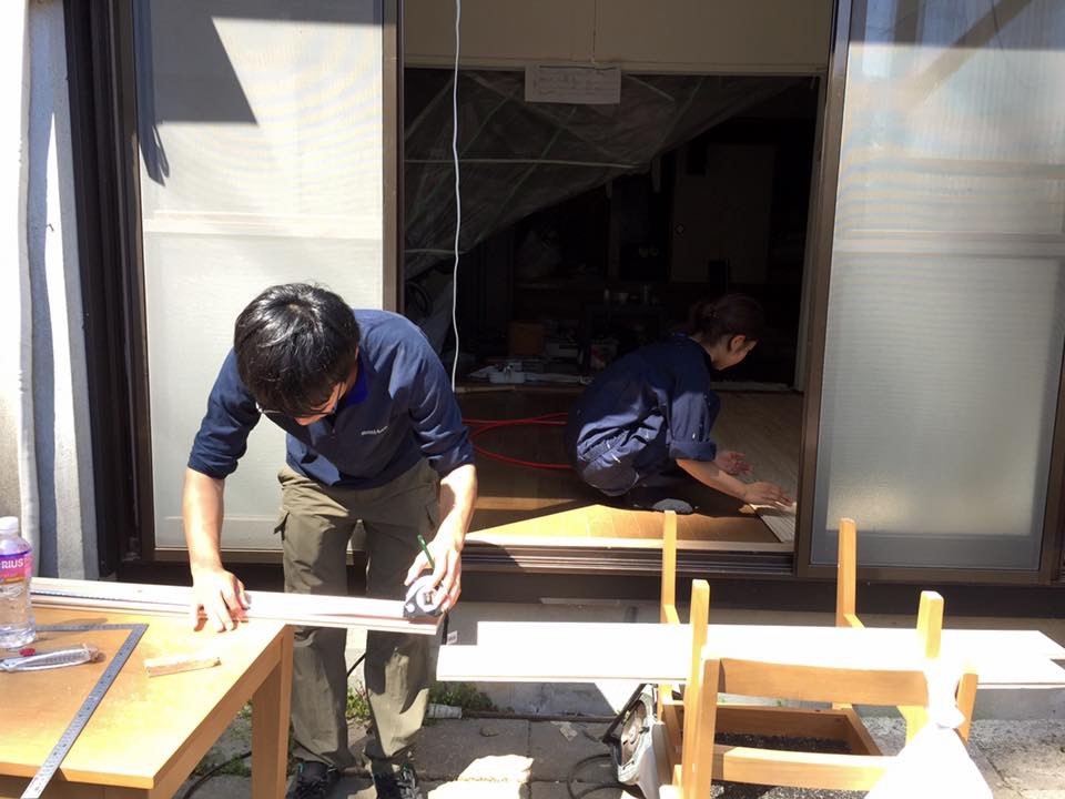 2つ目は、床に関してです。1期生はリビングを、2期生は玄関の床貼りをしてくれました。床材に使用したのは釜石森林組合から購入させていただいた釜石産のスギ材です。床貼りの作業は素人の学生にとって、難しい作業であり、多くの地元の方の力を借りながら作業を進めていました。床貼り後の白くてすべすべの新しい床は、とてもいい雰囲気です。