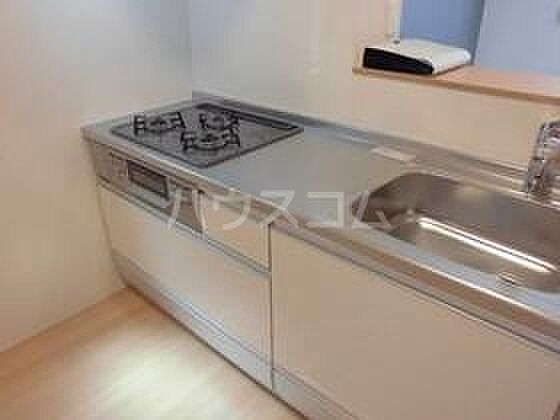 来客時にはTVインターホンで訪問者の顔を確認することができます。三口コンロが付いています。