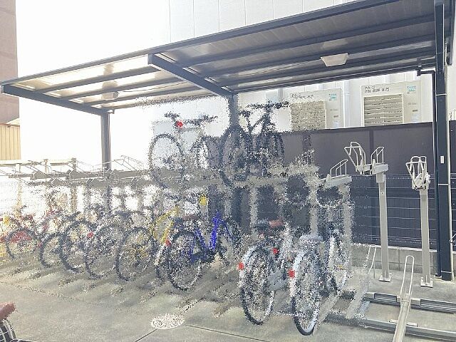 オートロック、防犯カメラ、TVモニタ付インターホン、エアコン、シューズボックス、光ファイバー、プロパンガス、バルコニー、室内洗濯機置場、エレベーター、宅配ボックス、バイク置き場あり、駐輪場ありその他