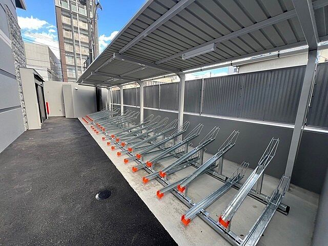 オートロック、TVモニタ付インターホン、冷房、インターネット使用料無料、プロパンガス、排水その他、バルコニー、室内洗濯機置場、南面バルコニー、エレベーター、宅配ボックス、バイク置き場あり、駐輪場あり備考