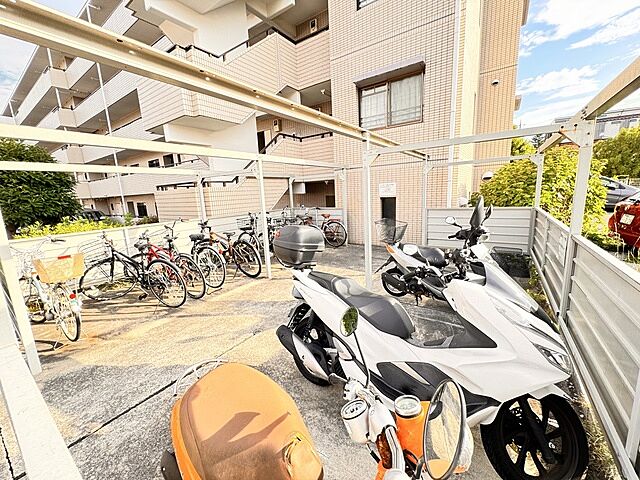 TVモニタ付インターホン、エアコン、クローゼット、シューズボックス、CATV、CS対応、BS対応、光ファイバー、公営水道、都市ガス、下水、フローリング、バルコニー、室内洗濯機置場、24時間換気システム、南面バルコニー、タイル貼り、エレベーター、宅配ボックス、駐車場あり、バイク置き場あり、駐輪場あり、平面駐車場その他