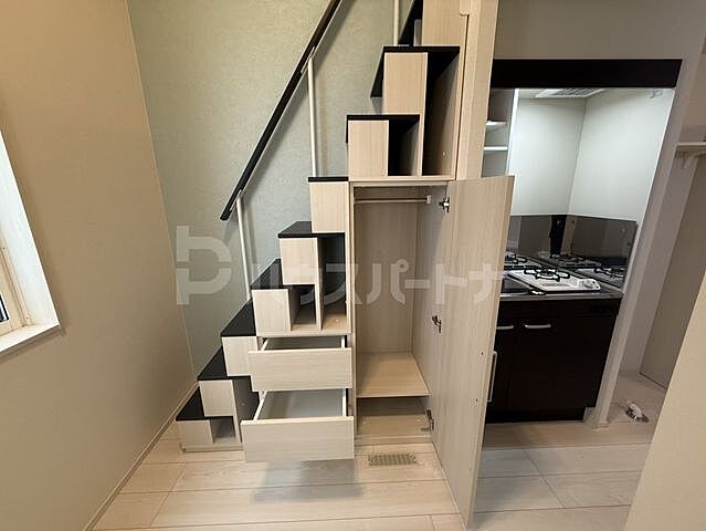 防犯カメラ、TVモニタ付インターホン、エアコン、クローゼット、シューズボックス、光ファイバー、インターネット使用料無料、プロパンガス、フローリング、ロフト付き、室内洗濯機置場、宅配ボックスその他