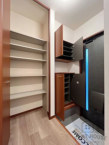 24時間有人管理、TVモニタ付インターホン、防犯(雨戸)シャッター、エアコン、ウォークインクローゼット、シューズボックス、CATV、光ファイバー、インターネット使用料無料、公営水道、都市ガス、下水、フローリング、専用庭付き、バルコニー、室内洗濯機置場、照明器具付き、宅配ボックス、駐車場あり、駐輪場あり、平面駐車場その他