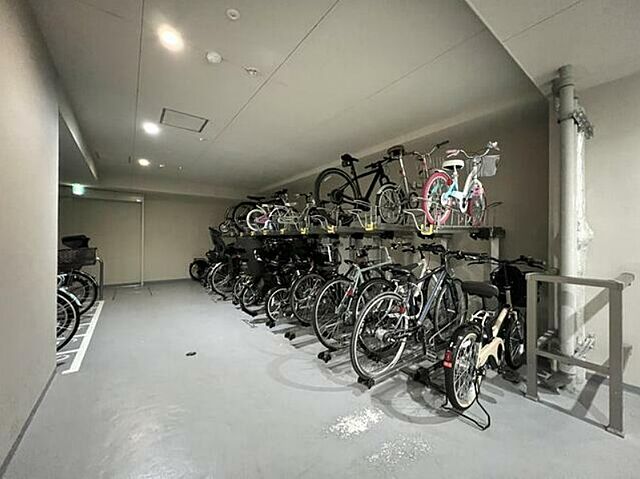 オートロック、防犯カメラ、TVモニタ付インターホン、エアコン、床暖房、ウォークインクローゼット、全居室収納、クローゼット、シューズボックス、インターネット使用料無料、都市ガス、下水、フローリング、バルコニー、室内洗濯機置場、タイル貼り、エレベーター、ゴミ出し24時間OK、宅配ボックス、バイク置き場あり、駐輪場ありその他