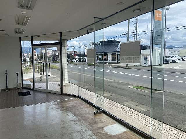 ガラス張り店舗・融雪駐車場2台無料・寒冷地エアコンあり・水廻り工事相談・フリーレント相談