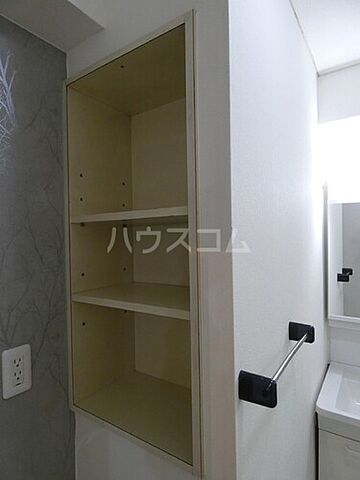 化粧品や洗面道具といった小物をまとめて収納できる独立洗面台が付いております。