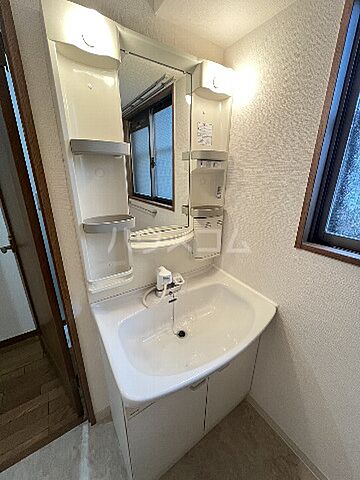 身支度に必要となる様々なアイテムを収納可能なスペースがある独立洗面台を設置しています。