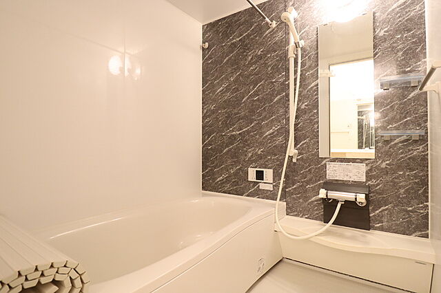 こちらはTVインターフォン付きのアパートです。追い焚き機能付きのお風呂です。