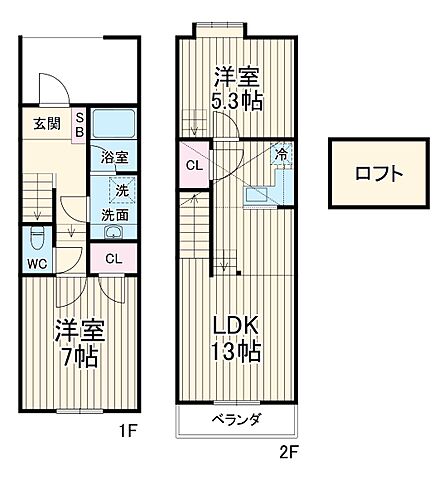 TVモニタ付インターホン、エアコン、クローゼット、シューズボックス、CATV、プロパンガス、メゾネット、フローリング、バルコニー、室内洗濯機置場、照明器具付き、駐車場ありその他
