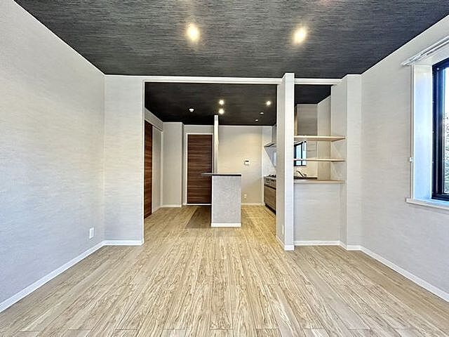 3K→2LDKにフルリノベーションしました!天井にもダーク調のアクセントクロスを使用し、高級感を醸し出しております♪(2023年9月フルリノベーション工事済)