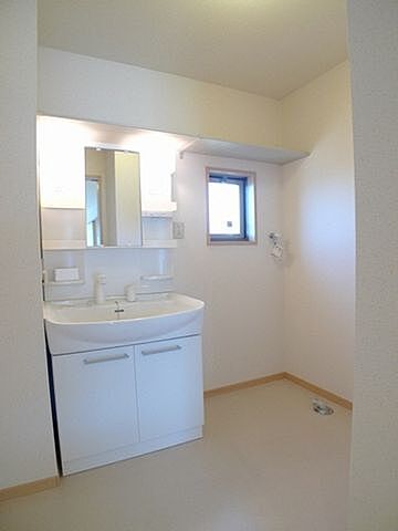 洗面所です☆大きい洗髪洗面化粧台なので、頭を洗う方は朝から大活躍です♪