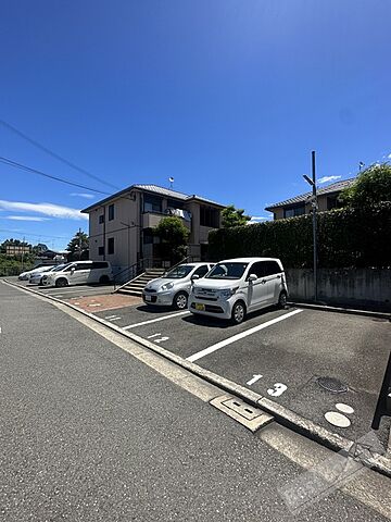 TVモニタ付インターホン、防犯(雨戸)シャッター、ウォークインクローゼット、全居室収納、クローゼット、シューズボックス、CATV、BS対応、インターネット対応、インターネット使用料無料、公営水道、プロパンガス、下水、フローリング、バルコニー、室内洗濯機置場、24時間換気システム、南面バルコニー、全室フローリング、駐車場あり、駐輪場あり、平面駐車場その他