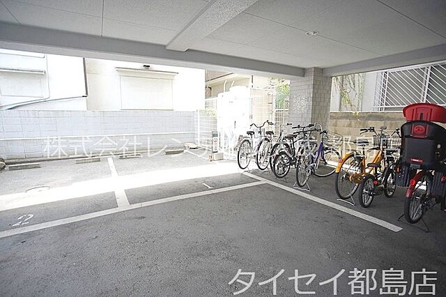 オートロック、エアコン、クローゼット、シューズボックス、CS対応、BS対応、公営水道、都市ガス、下水、フローリング、バルコニー、洗濯機置場あり、ゴミ出し24時間OK、免震構造、バイク置き場あり、駐輪場あり