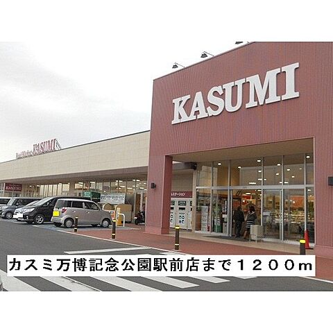 スーパー「カスミ万博記念公園駅前店まで1200m」