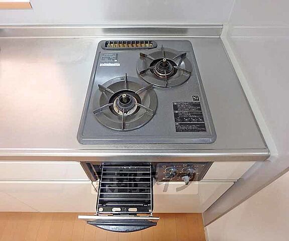 グリル付きの2口ガスキッチン