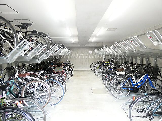 オートロック、防犯カメラ、TVモニタ付インターホン、エアコン、ウォークインクローゼット、シューズボックス、光ファイバー、都市ガス、フローリング、バルコニー、室内洗濯機置場、南面バルコニー、タイル貼り、エレベーター、宅配ボックス、バイク置き場あり、駐輪場ありその他