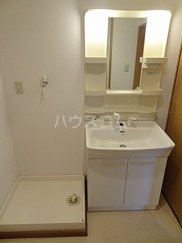 朝の整髪も手早くできる洗面化粧台が備え付けられています。床がフローリングの物件です。