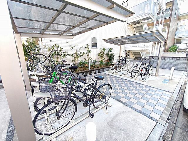 セキュリティ会社加入済、TVモニタ付インターホン、エアコン、ウォークインクローゼット、全居室収納、クローゼット、シューズボックス、インターネット使用料無料、都市ガス、下水、フローリング、バルコニー、室内洗濯機置場、照明器具付き、駐輪場ありその他