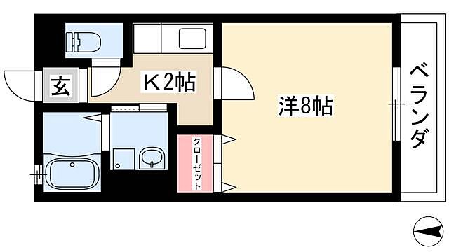 バス・トイレ別で、洋室8帖あって広々としたお部屋です。