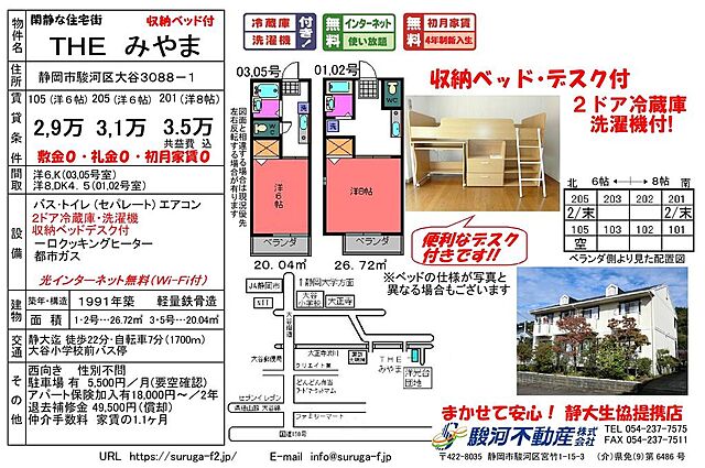 - 管理員:巡回、管理会社:駿河不動産株式会社