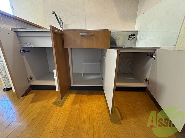 キッチン上部の棚に台所用品や食器などを入れることができます。