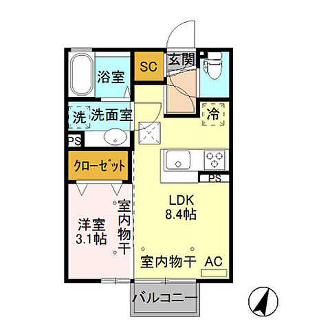 室内物干し付きで女性の洗濯物も安心です。