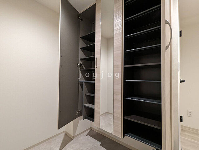 オートロック、TVモニタ付インターホン、ガス暖房、エアコン、全居室収納、クローゼット、シューズボックス、光ファイバー、公営水道、都市ガス、下水、フローリング、バルコニー、室内洗濯機置場、宅配ボックスその他