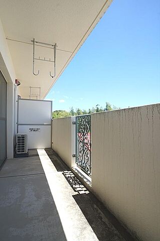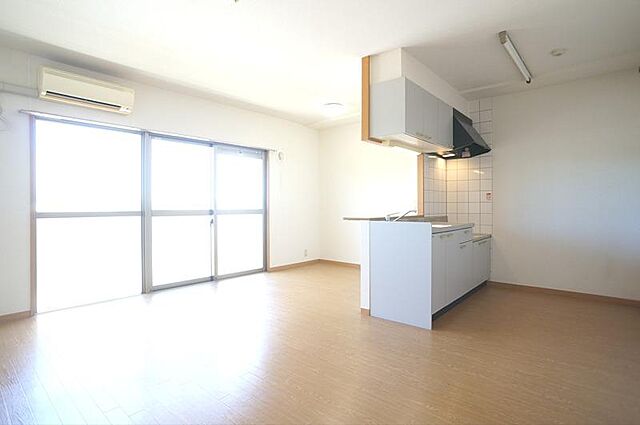 オートロック、TVモニタ付インターホン、エアコン、シューズボックス、公営水道、プロパンガス、下水、フローリング、バルコニー、室内洗濯機置場、南面バルコニー、全室フローリング、タイル貼り、駐輪場あり、平面駐車場