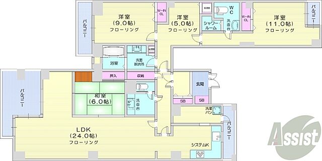 4LDK、ワンフロア、都市ガス、システムキッチン