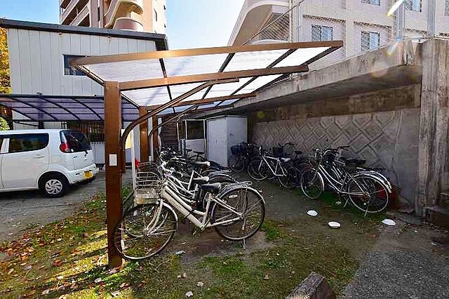 防犯カメラ、TVモニタ付インターホン、エアコン、クローゼット、シューズボックス、光ファイバー、インターネット使用料無料、公営水道、プロパンガス、下水、フローリング、バルコニー、室内洗濯機置場、照明器具付き、南面バルコニー、タイル貼り、エレベーター、バイク置き場あり、駐輪場ありその他