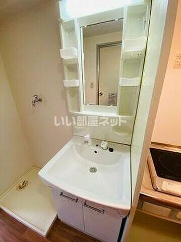 独立洗面台が付いているので、歯ブラシやドライヤーなどもまとめてスッキリ収納できます。