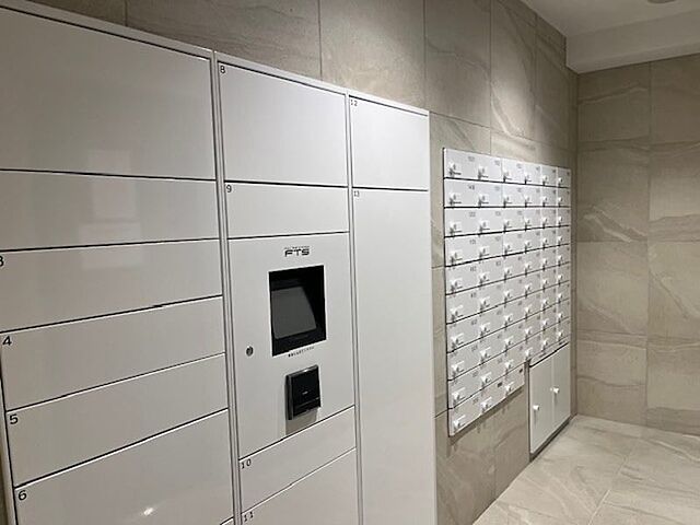 オートロック、TVモニタ付インターホン、エアコン、ウォークインクローゼット、CS対応、BS対応、インターネット対応、インターネット使用料無料、都市ガス、エレベーター、宅配ボックス、駐車場あり