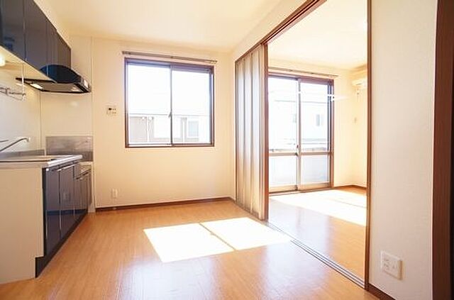 【寝室からみたリビングとダイニング】各室にLED照明が備え付けなので、入居時の購入費用削減だけでなく、入居後の電気代も安くて経済的♪