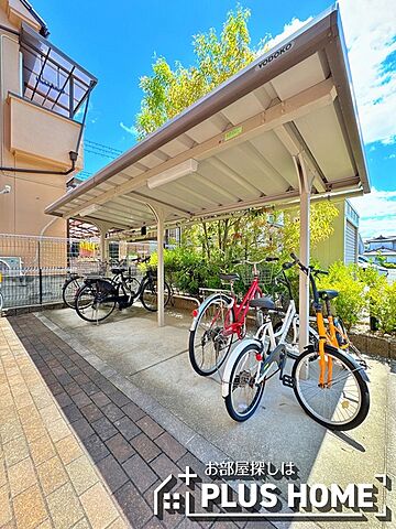 TVモニタ付インターホン、エアコン、クローゼット、シューズボックス、BS対応、光ファイバー、公営水道、プロパンガス、浄化槽、フローリング、バルコニー、室内洗濯機置場、照明器具付き、24時間換気システム、全室フローリング、駐車場あり、駐輪場あり、平面駐車場その他