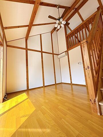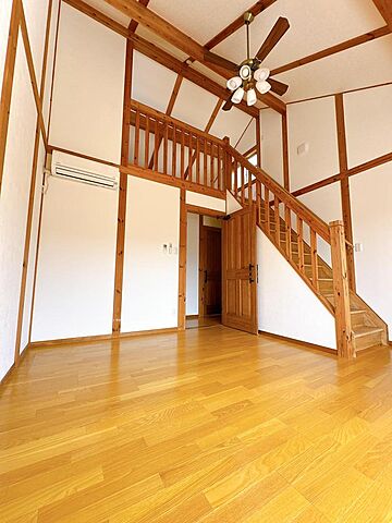 TVモニタ付インターホン、エアコン、公営水道、都市ガス、下水、バルコニー、ロフト付き、室内洗濯機置場、吹き抜け、南面バルコニー、全室フローリング、駐車場あり、平面駐車場備考
