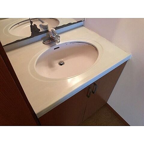 化粧品や洗面道具といった小物をまとめて収納できる独立洗面台が付いております。