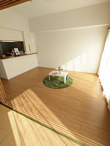 13帖のリビングになります。南東向きのバルコニーから明るい日差しが入ります。
