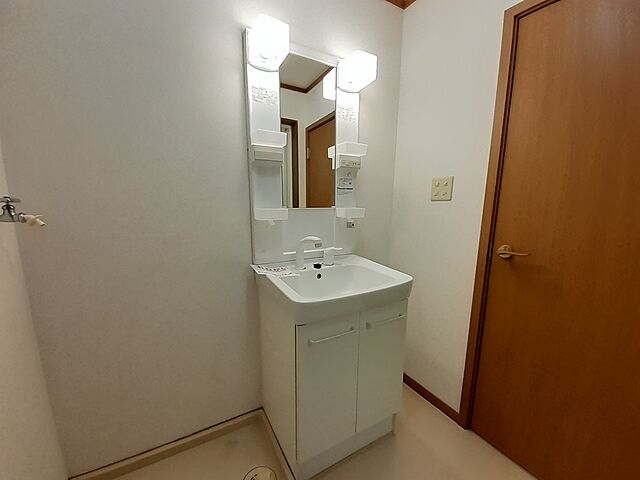 洗面化粧台を備えているので、歯ブラシやドライヤーなどをまとめて収納できます。2人入居可能な物件です。