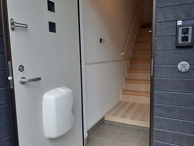 防犯カメラ、TVモニタ付インターホン、エアコン、ウォークインクローゼット、クローゼット、シューズボックス、BS対応、インターネット使用料無料、プロパンガス、下水、フローリング、バルコニー、室内洗濯機置場、照明器具付き、南面バルコニー、宅配ボックス、駐車場あり、駐輪場ありその他