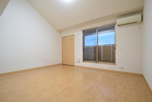 収納スペースとしても使えるので空間が広く使えます。エアコン付きの物件で、一年中ストレスフリー。