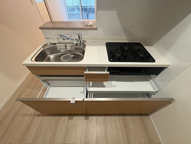 ガスコンロ設置済、システムキッチン、カウンターキッチン、バス・トイレ別、シャワー付洗面化粧台、温水洗浄便座、浴室乾燥機設備・サービス