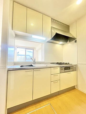 【キッチン】開放感のあるカウンターキッチン。もちろんビルトインコンロ仕様(3口ガスコンロ+グリル付き)です!