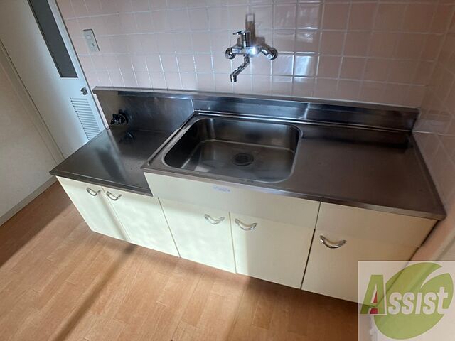 シンプルなキッチンです。ガスコンロも設置できる仕様です。