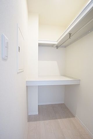 2面に棚があり、ハンガーパイプがセットされています。男性女性問わず圧倒的な人気の設備【ウォークインクローゼット】で“あなたも今日から収納上手”です♪