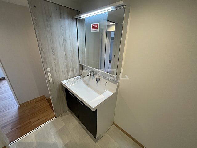 身支度に必要となる様々なアイテムを収納可能なスペースがある独立洗面台が付いています。
