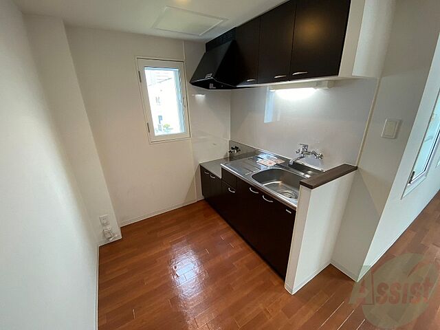 ガスキッチンです。2口コンロが設置できます。