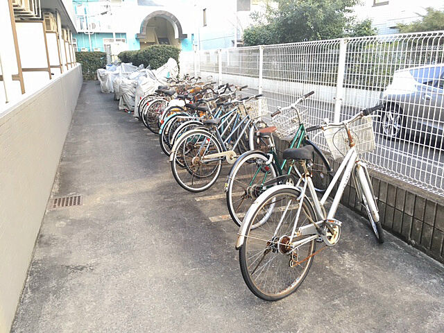 オートロック、エアコン、クローゼット、シューズボックス、BS対応、光ファイバー、公営水道、プロパンガス、下水、バルコニー、室内洗濯機置場、バイク置き場あり、駐輪場ありその他