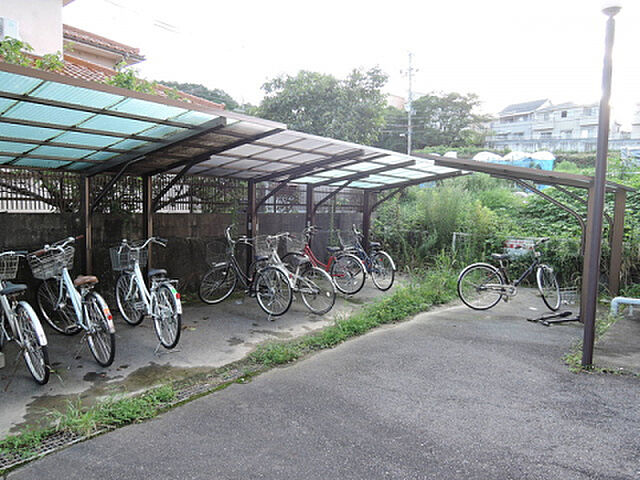 オートロック、防犯カメラ、TVモニタ付インターホン、エアコン、シューズボックス、BS対応、インターネット使用料無料、プロパンガス、フローリング、バルコニー、室内洗濯機置場、駐車場あり、バイク置き場あり、駐輪場ありその他