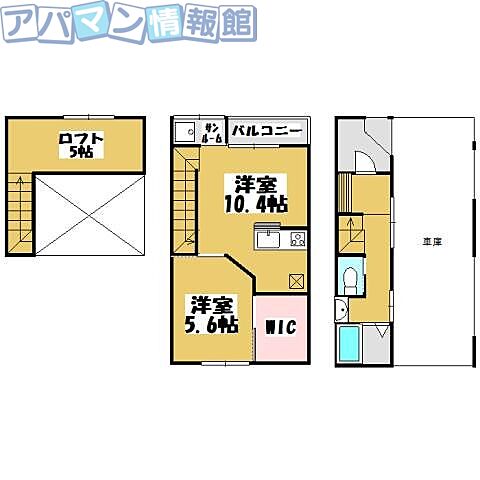 TVモニタ付インターホン、エアコン、ウォークインクローゼット、シューズボックス、BS対応、公営水道、都市ガス、下水、メゾネット、フローリング、バルコニー、ロフト付き、室内洗濯機置場、照明器具付き、駐車場ありその他